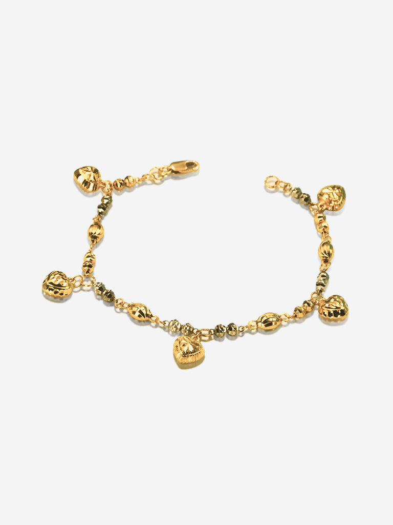 Crafted from premium 916 gold, the Amour Dangling Love Bracelet combines timeless elegance with expert craftsmanship. Its delicate design features charming dangling elements that catch the light, symbolizing affection and connection. Perfect for both everyday wear and special occasions, this bracelet offers lasting beauty and a refined touch to any ensemble.