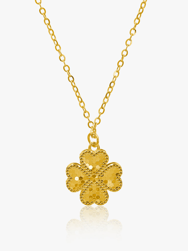This 916 Gold Four Leaf Chain Set is expertly crafted and boasts a classic four leaf design. Made with high quality 916 gold, it is a timeless piece that adds a touch of elegance to any outfit. The intricate design and superior quality make it a perfect accessory for any occasion.