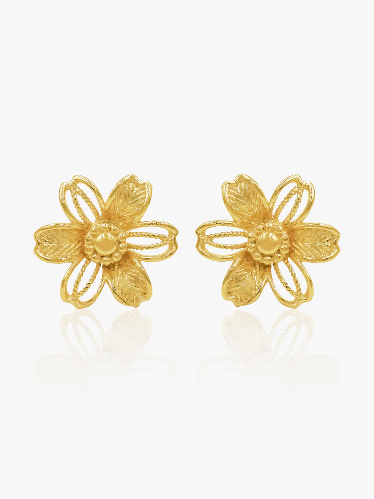 Crafted with 916 gold, these delicate flower earrings are a timeless addition to any collection. The intricate design showcases the quality of the gold, making them a valuable investment. With their versatile and elegant design, these earrings are perfect for any occasion.