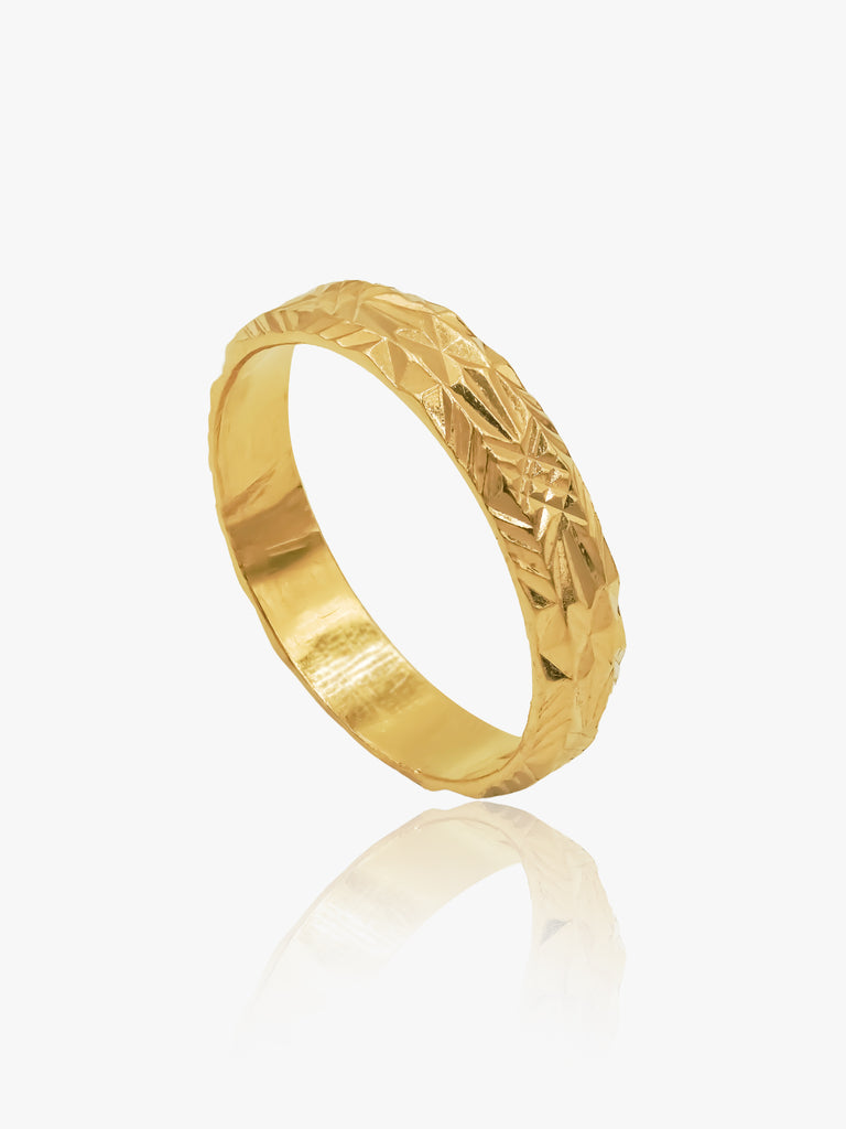 This beautifully crafted 916 Gold Mozaic Ring showcases intricate design and timeless elegance. Made with 916 gold, it is both luxurious and durable, making it a perfect addition to any jewelry collection. The unique mozaic pattern adds a touch of sophistication and charm to any outfit. Expertly crafted by skilled artisans, this ring is the epitome of quality and style.