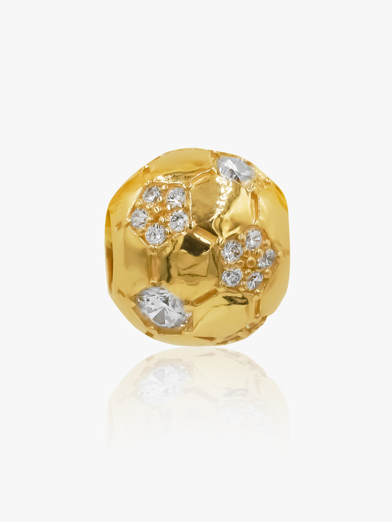 This exquisite 916 Gold Soccer Ball Charm showcases a perfectly crafted soccer ball, delicately carved from high-quality 916 gold. With its elegant design and superior craftsmanship, this pendant is a must-have for any soccer enthusiast or lover of fine jewelry. Add a touch of luxury to your outfit and show your passion for the game with this stunning piece.