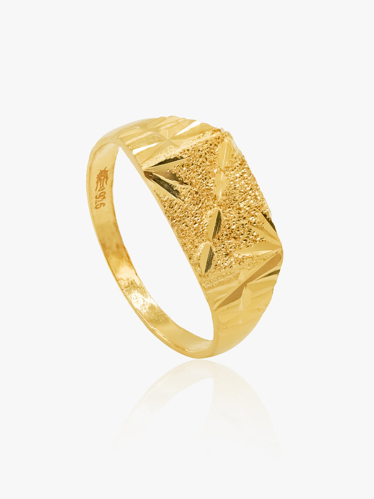 This 916 Gold Stardust Ring is crafted from high-quality 916 gold and features a unique stardust finish. The 916 gold purity ensures durability and long-lasting shine. Add a touch of elegance and sophistication to any outfit with this stunning ring.